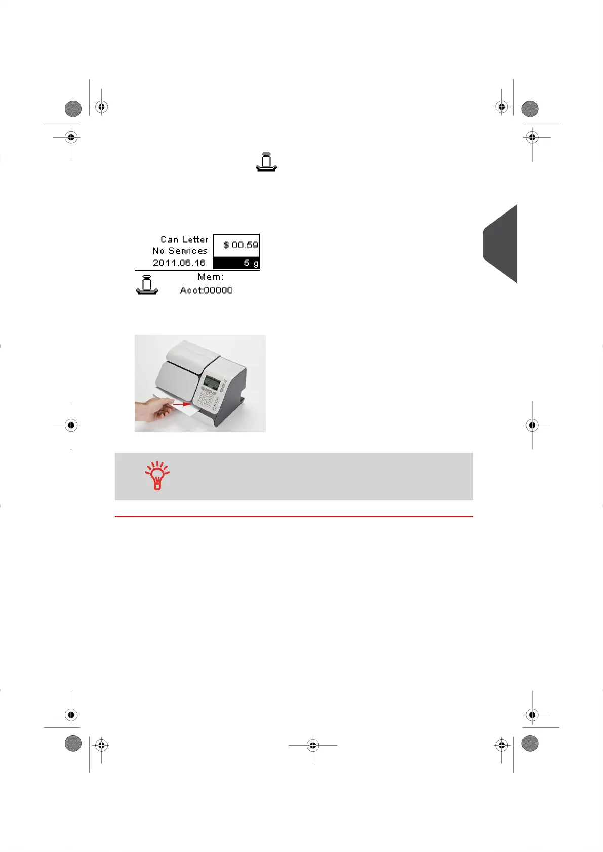 2. Remove the envelope from the Weighing Platform and insert it into the Mail Path, with