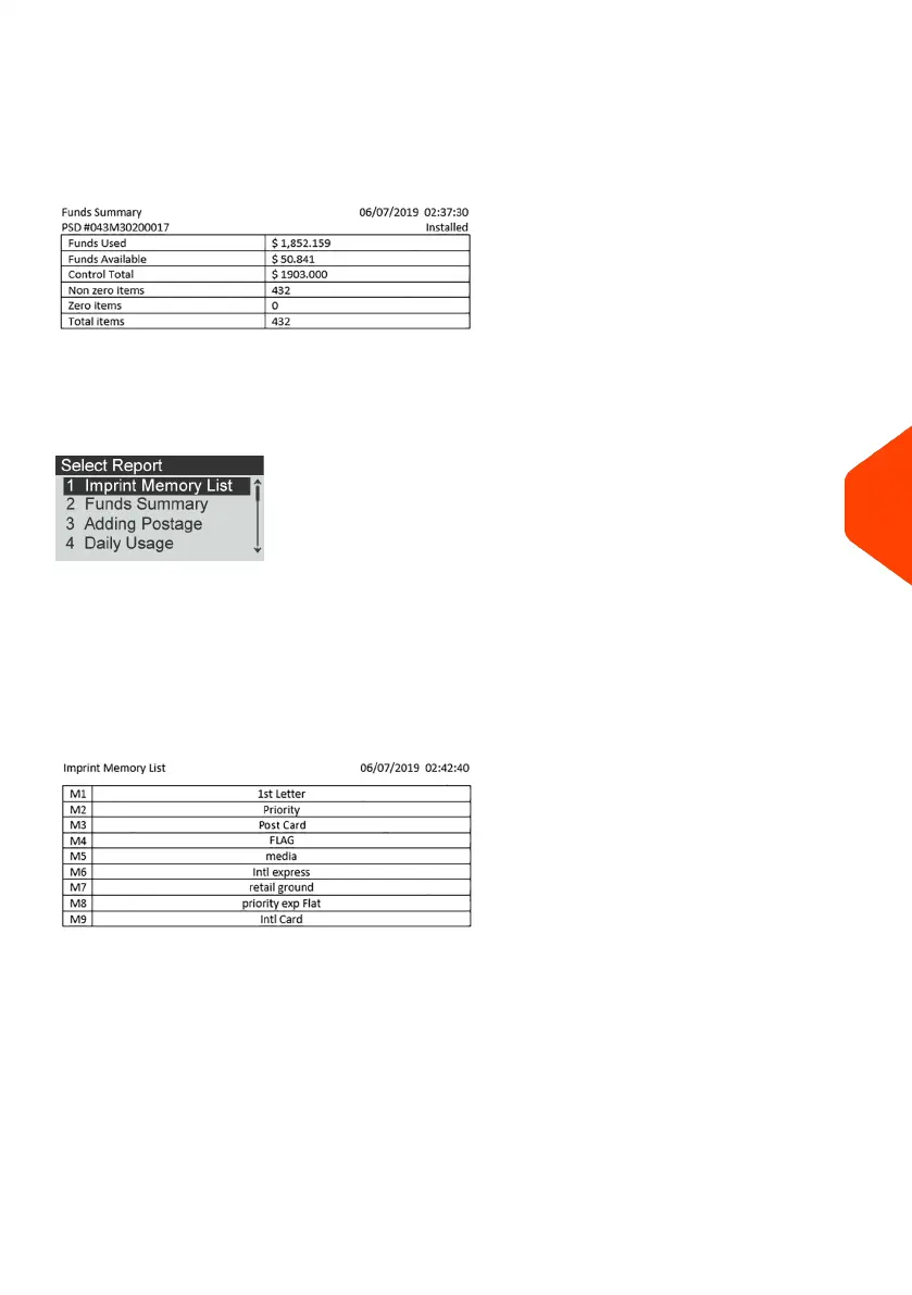 The Imprint Memory List report outputs are: