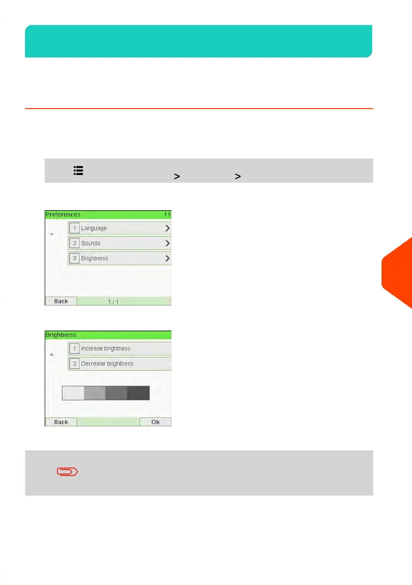 2. Type 1 or 2 to increase or decrease the brightness. The screen updates immediately.
