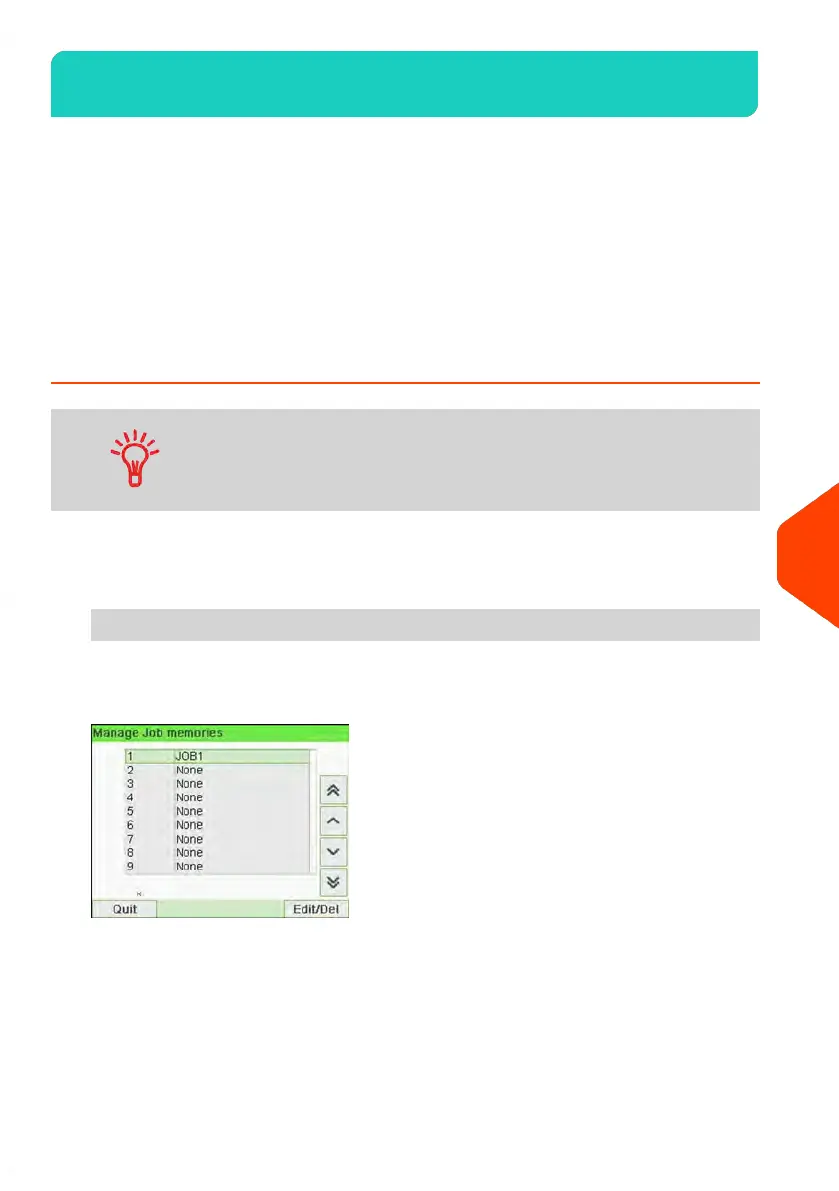 The current list of job memories is displayed in the Job memories screen.