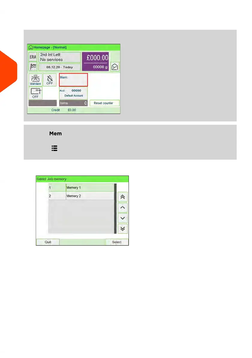 Tap the job memory zone on the screen.