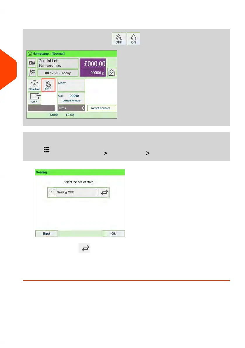 Select the switch ( ) on the screen to set sealing on or off and then press [OK].