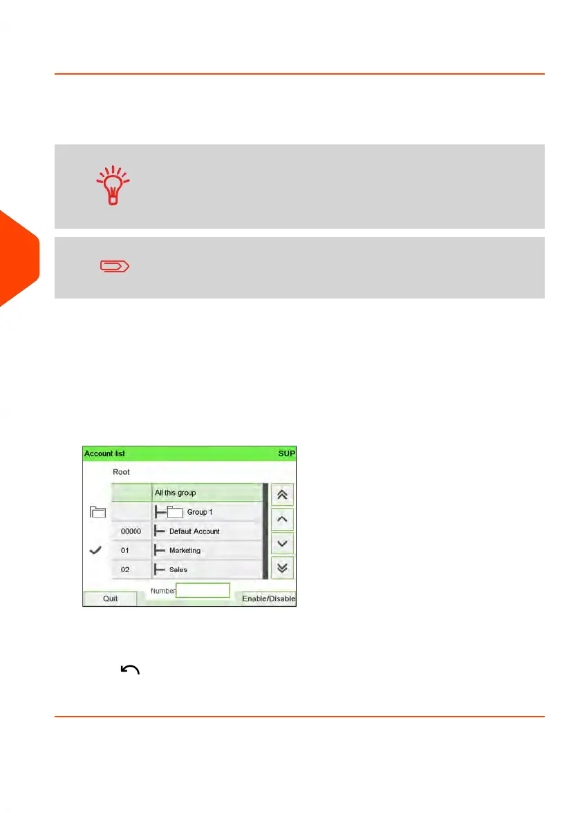 press [OK] (Enable/Disable). Repeat until all accounts to be assigned are checked.