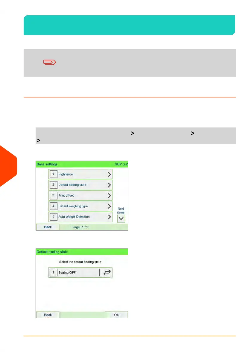 As supervisor, you can set the default sealing Mode (ON or OFF).