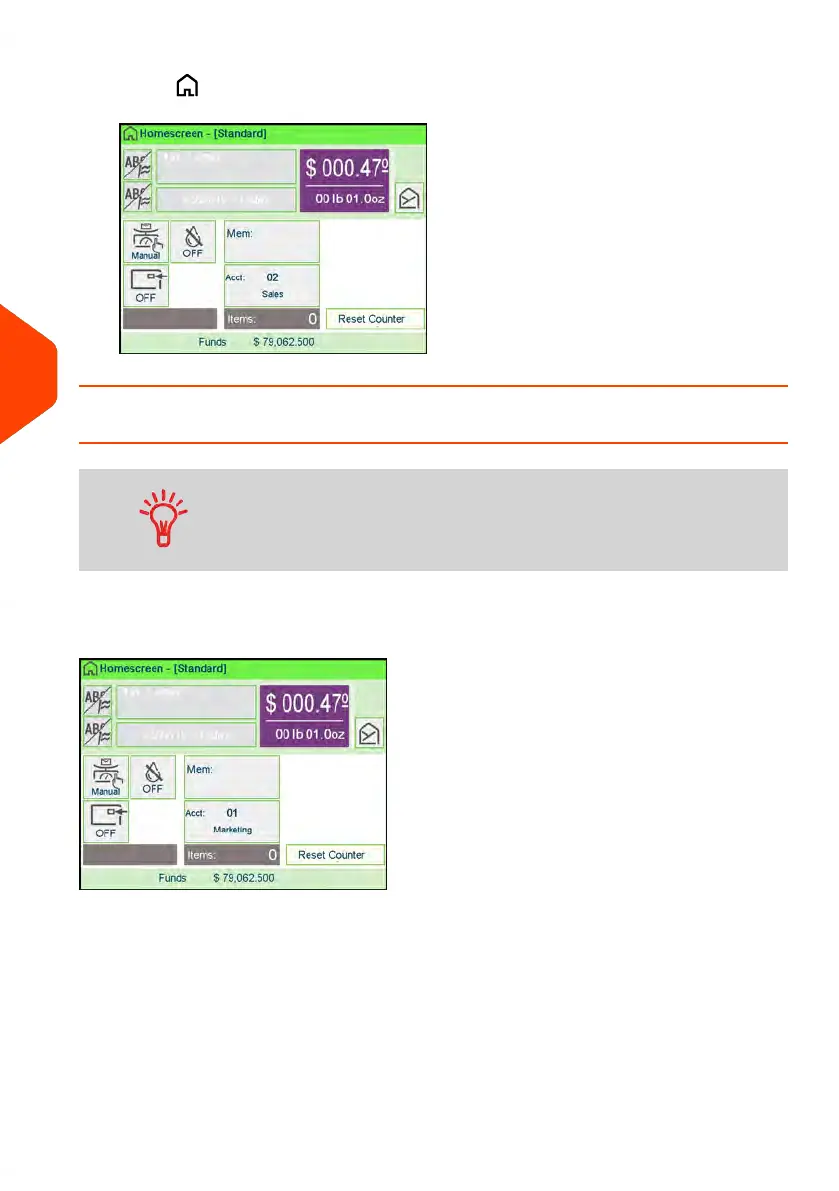 In this example, we will change from "Marketing (account 01)" to "Sales (account 02)".