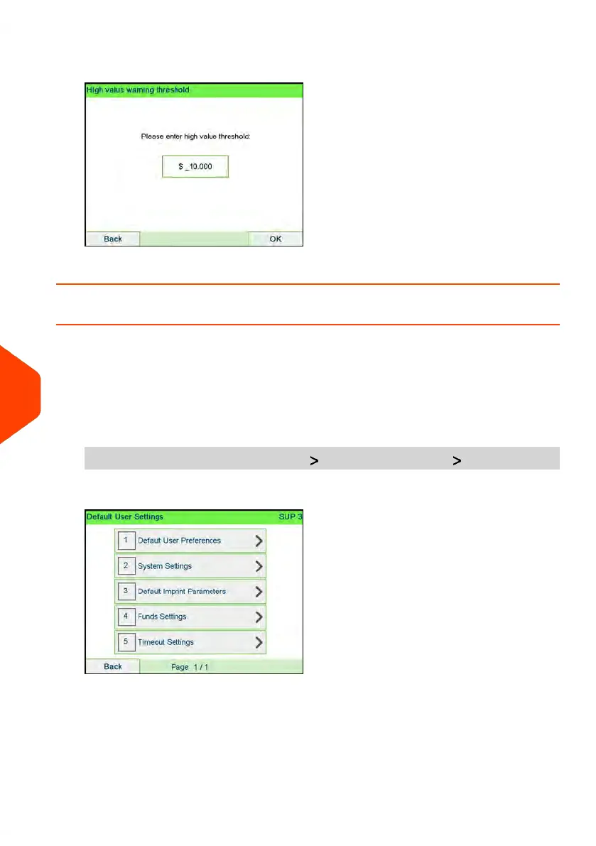 From the main menu, select the path: Default user settings Funds settings