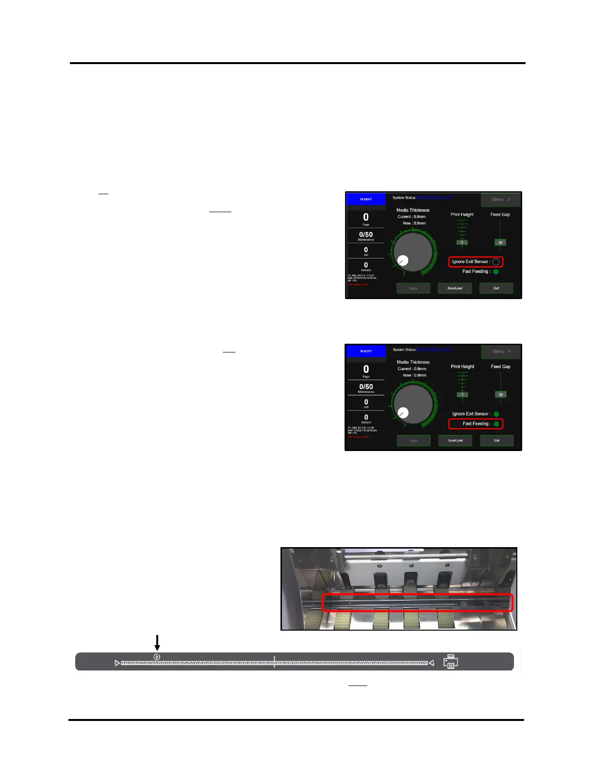 - Disable (circle turns black) the Ignore Exit Sensor option if the Media and media feed position,