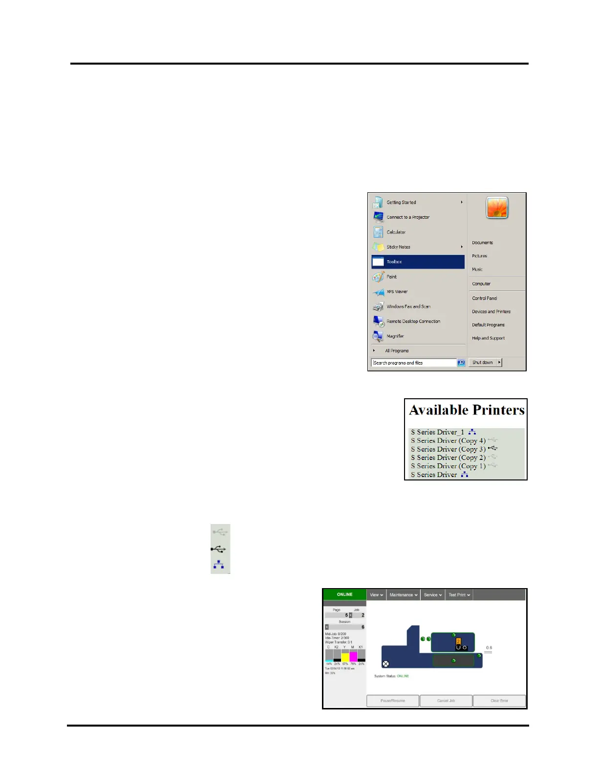 Once the “S Series Driver” is installed, you can access the Printer Toolbox remotely from a computer. You can