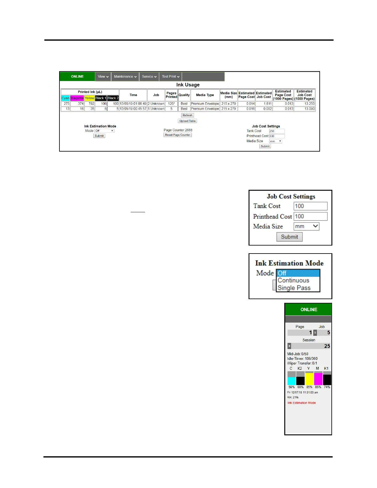 INK ESTIMATION MODE – Provides the ability to estimate ink usage and