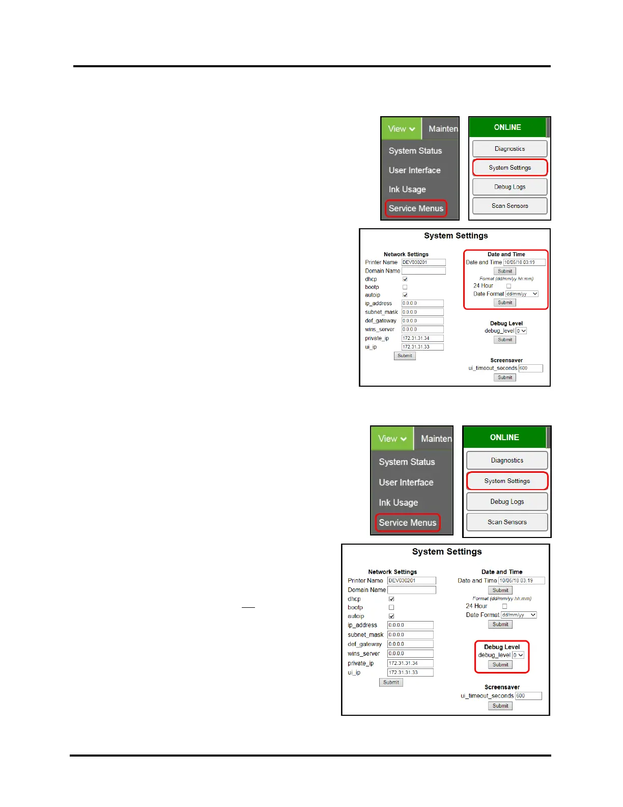 2. “System Settings” page opens. Go to Debug Level