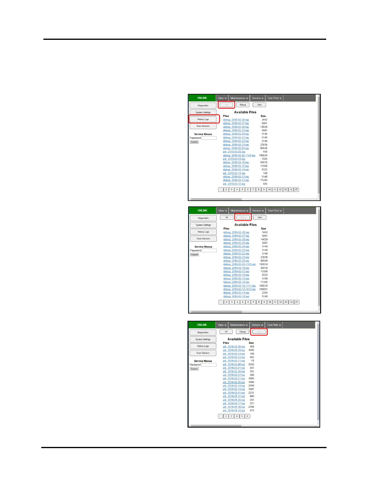 Jobs – Shows only Jobs printed log files.