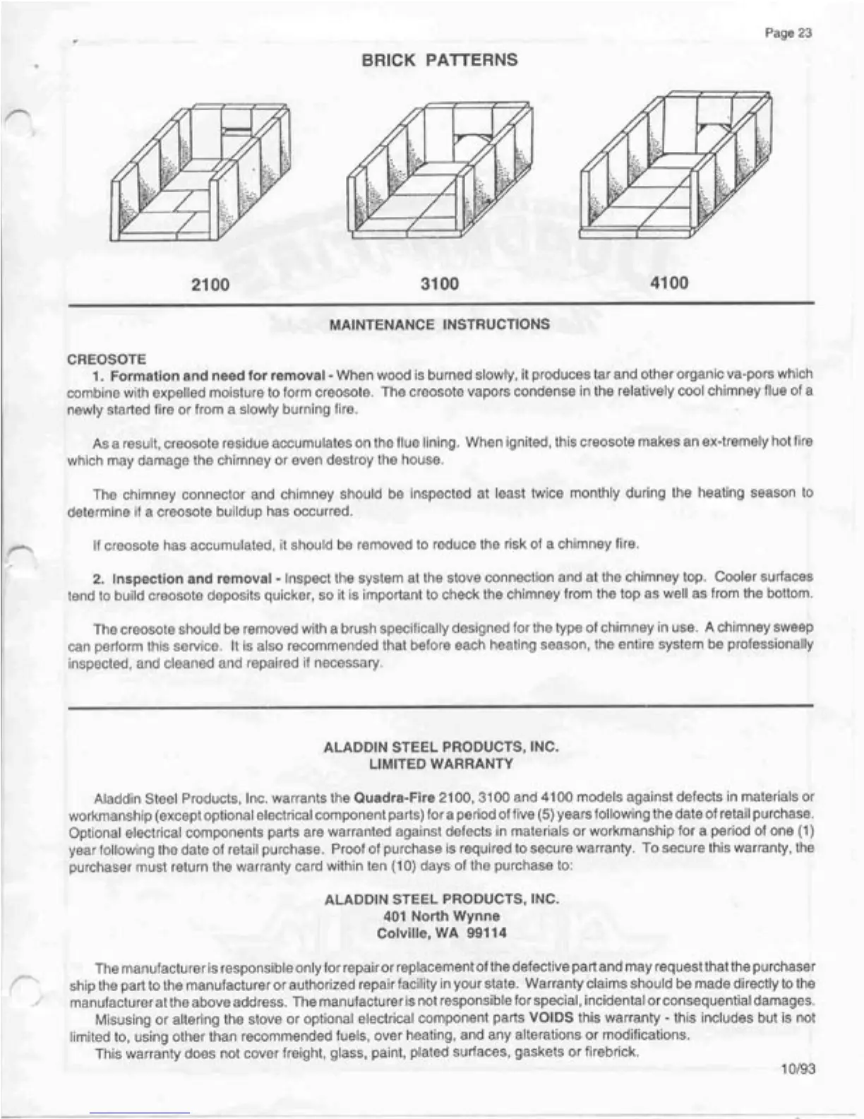 Quadra-Fire 4100 - Creosote Management and Warranty