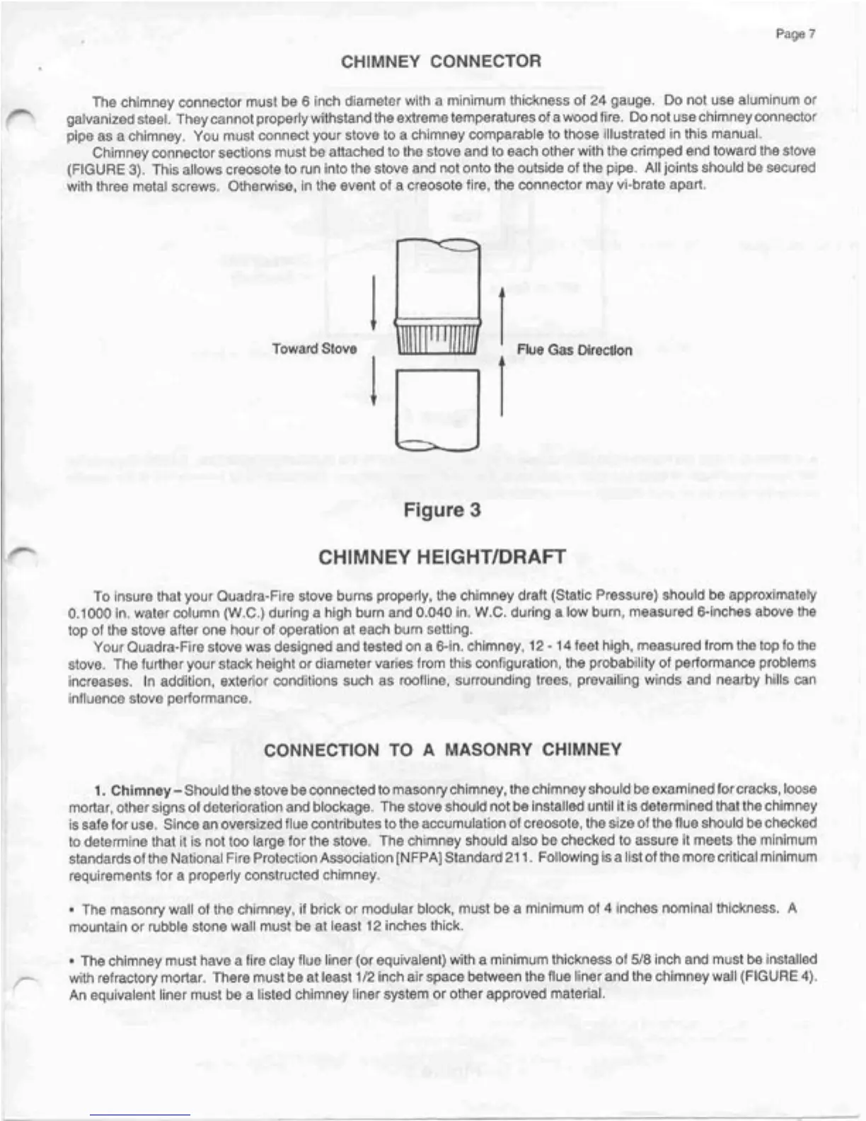 Quadra-Fire 4100 - Chimney Height;Draft; Connection to a Masonry Chimney