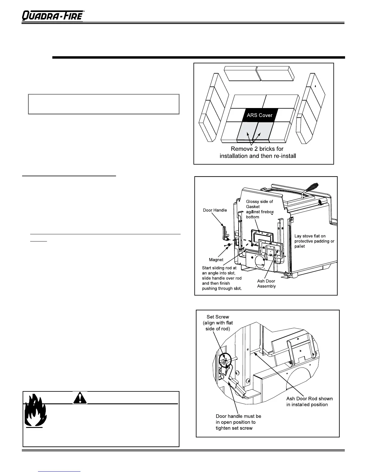 4. Install ash door assembly by sliding the rod at an angle