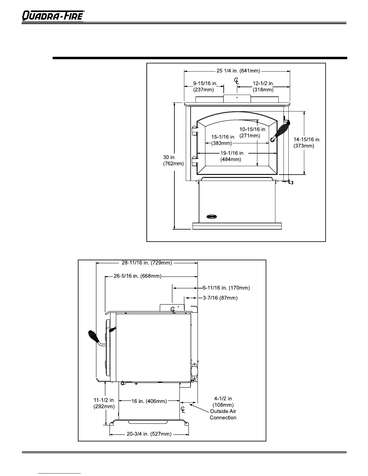 Quadra-Fire 4300 - Section 3: Dimensions & Clearances; Appliance Dimensions