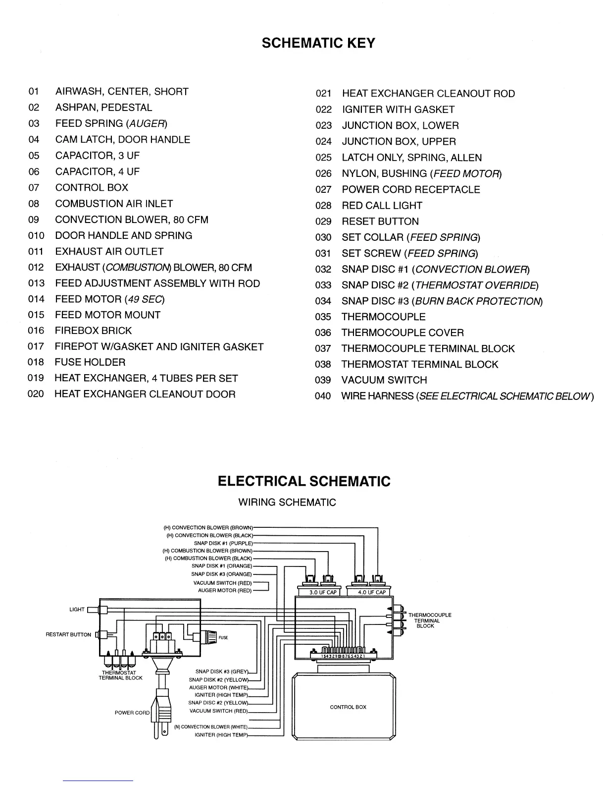 Quadra-Fire 800 NOVA - Schematic Key; Electrical Schematic