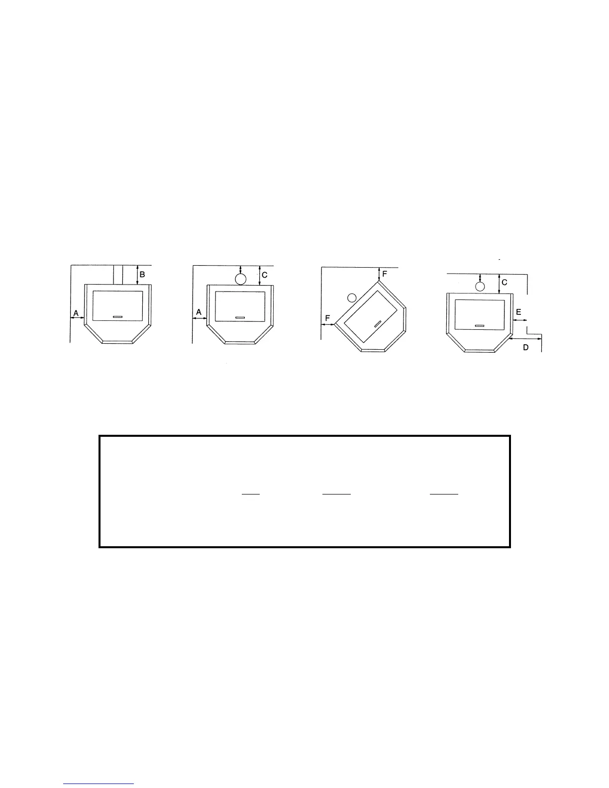 B = 2” (50mm) C = 3” (75mm) Horizontal and Vertical (from side of the stove face)