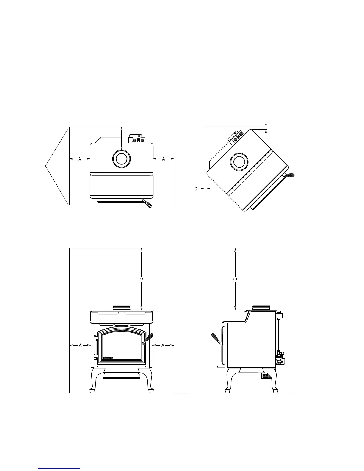 Minimum clearances to combustible materials from stove body: