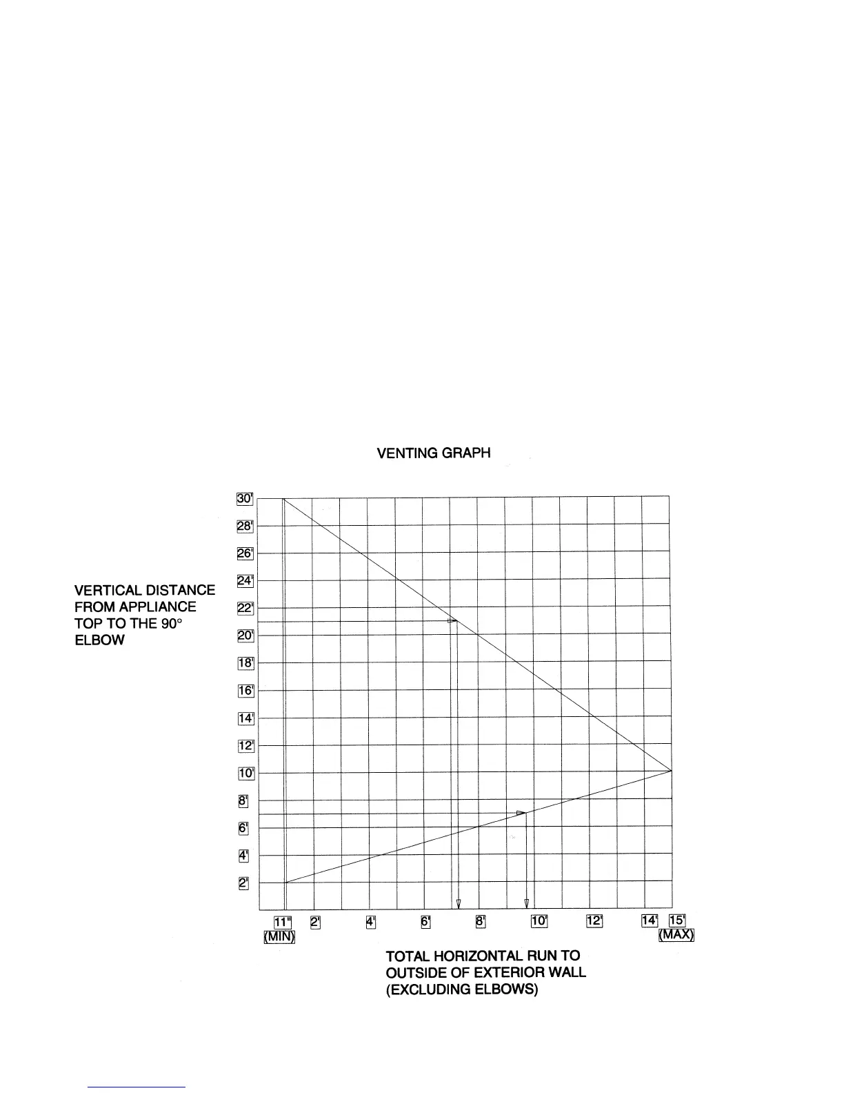 Note: The maximum horizontal vent run is 15’ (4.57m) when the vertical vent rise is 10’ (3.05m).