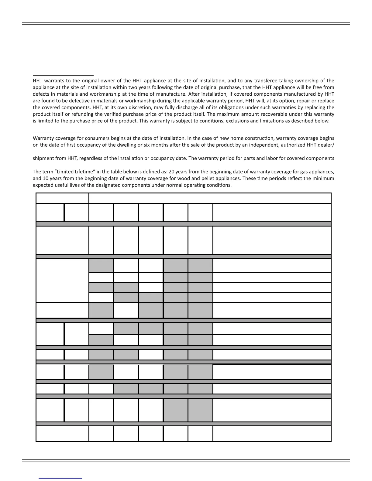 Hearth & Home Technologies, on behalf of its hearth brands (“HHT”), extends the following warranty for HHT gas, wood, pellet and