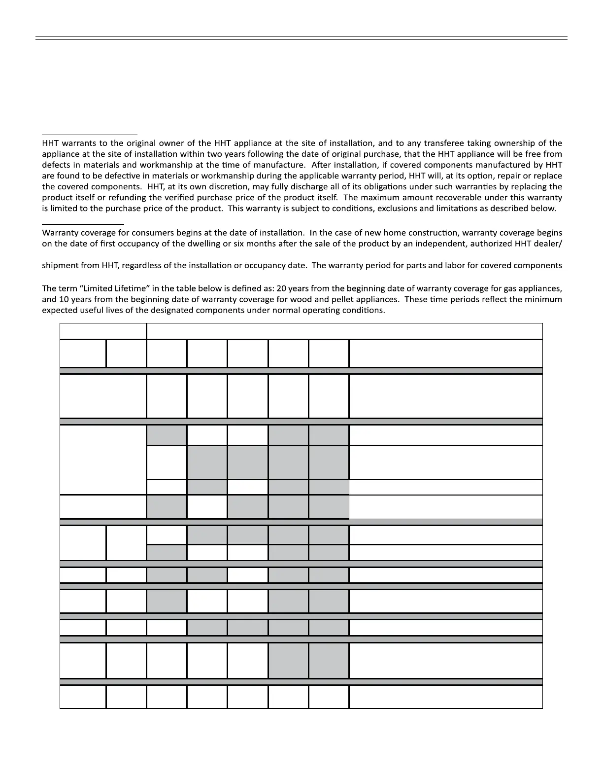 Hearth & Home Technologies, on behalf of its hearth brands (“HHT”), extends the following warranty for HHT gas, wood, pellet and