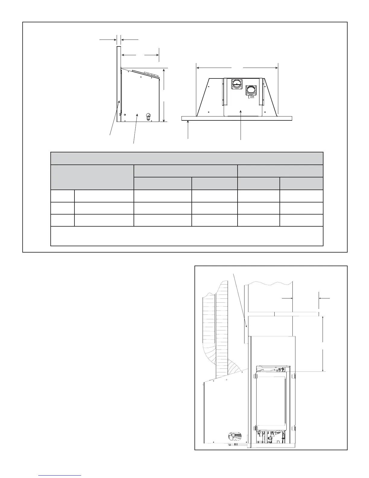 * Note: If exhaust collar on insert and fi replace damper do not line up, add 4 inches (102 mm) to minimum