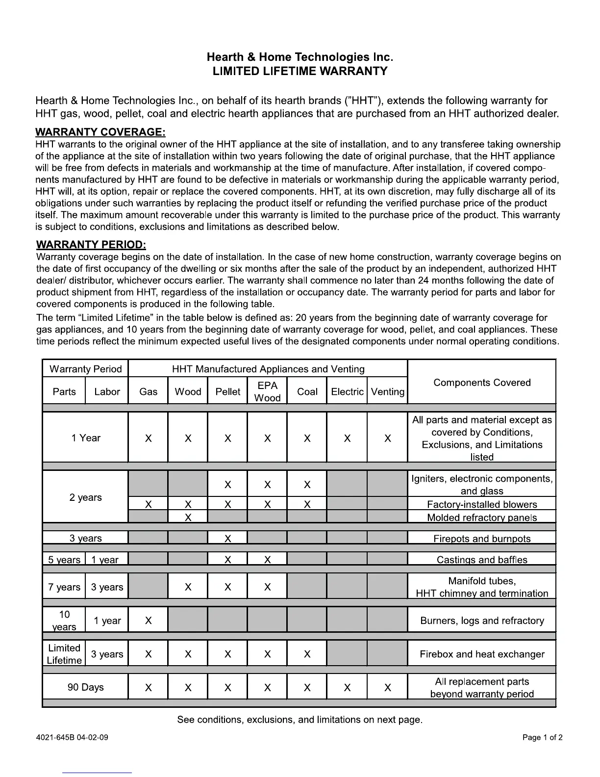 Quadra-Fire QF130 - Limited Lifetime Warranty