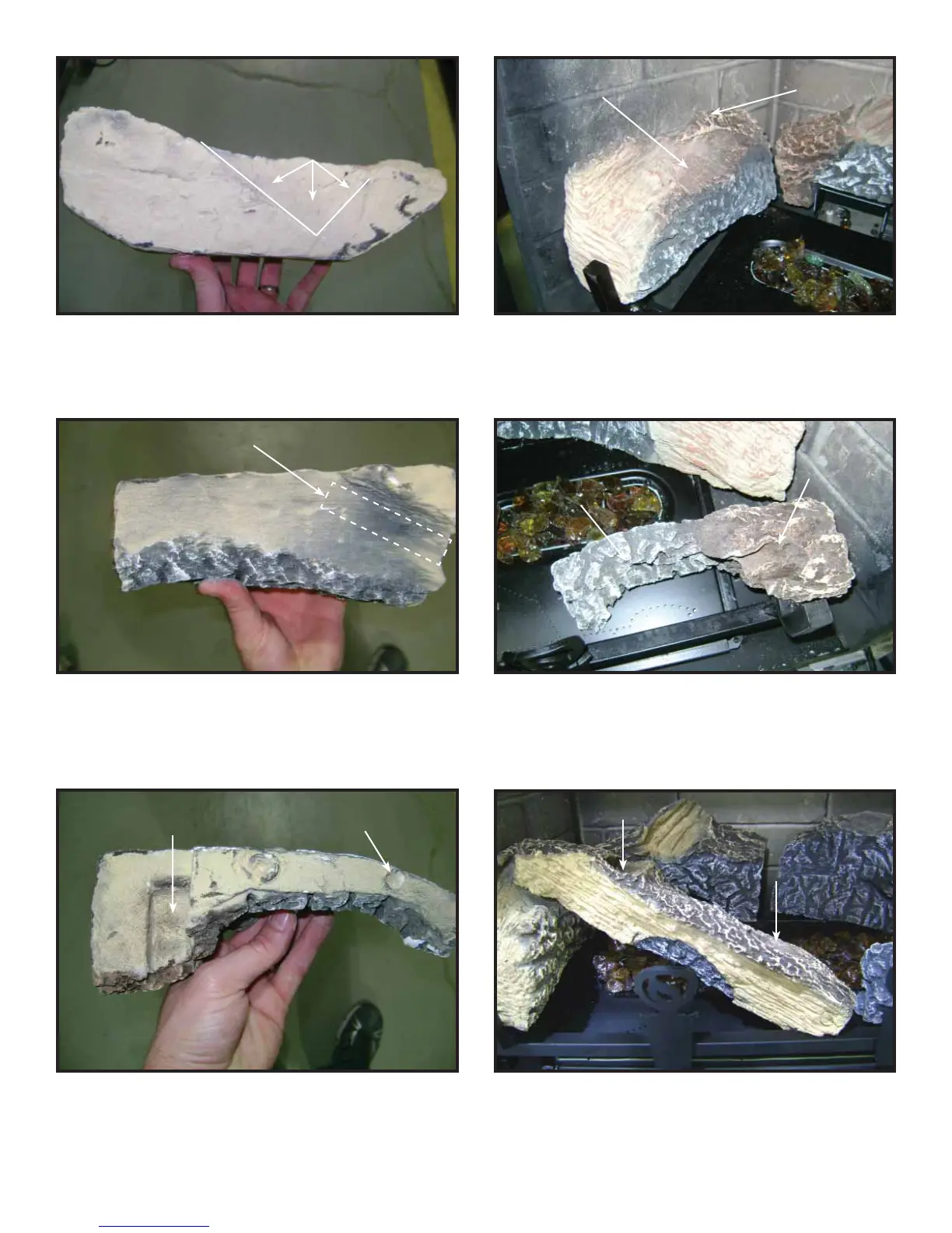 the vertical portion of the grate tine. Swing the rear of the log counterclockwise until it touches the fi rebox.