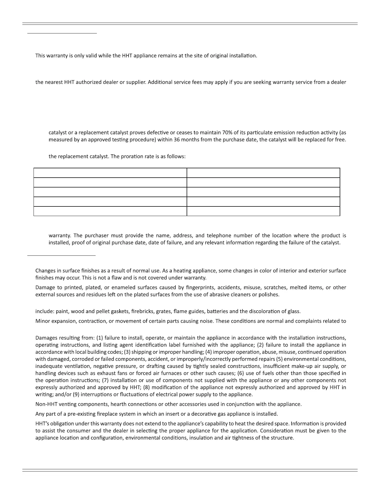 o For wood burning products containing a catalyst, the catalyst will be warranted for a six-year period as follows: if the original