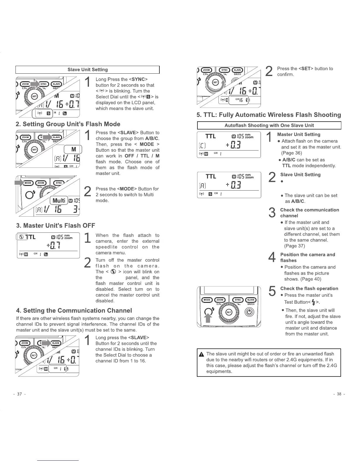 Quadralite Stroboss 36 C - Setting Group Units Flash Mode; Master Units Flash off; Setting the Communication Channel; TTL: Fully Automatic Wireless Flash Shooting