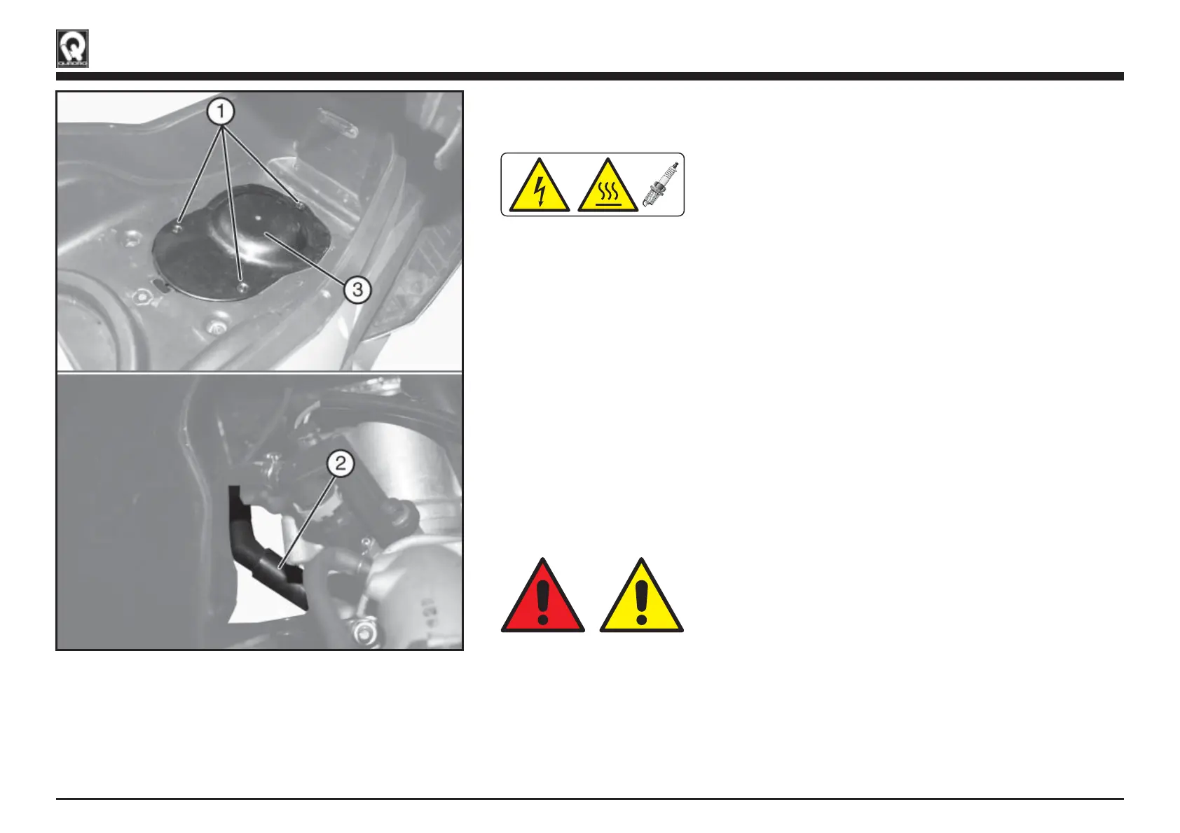 • Lift the seat, remove the three fixing screws «1» and lift the inspec-
