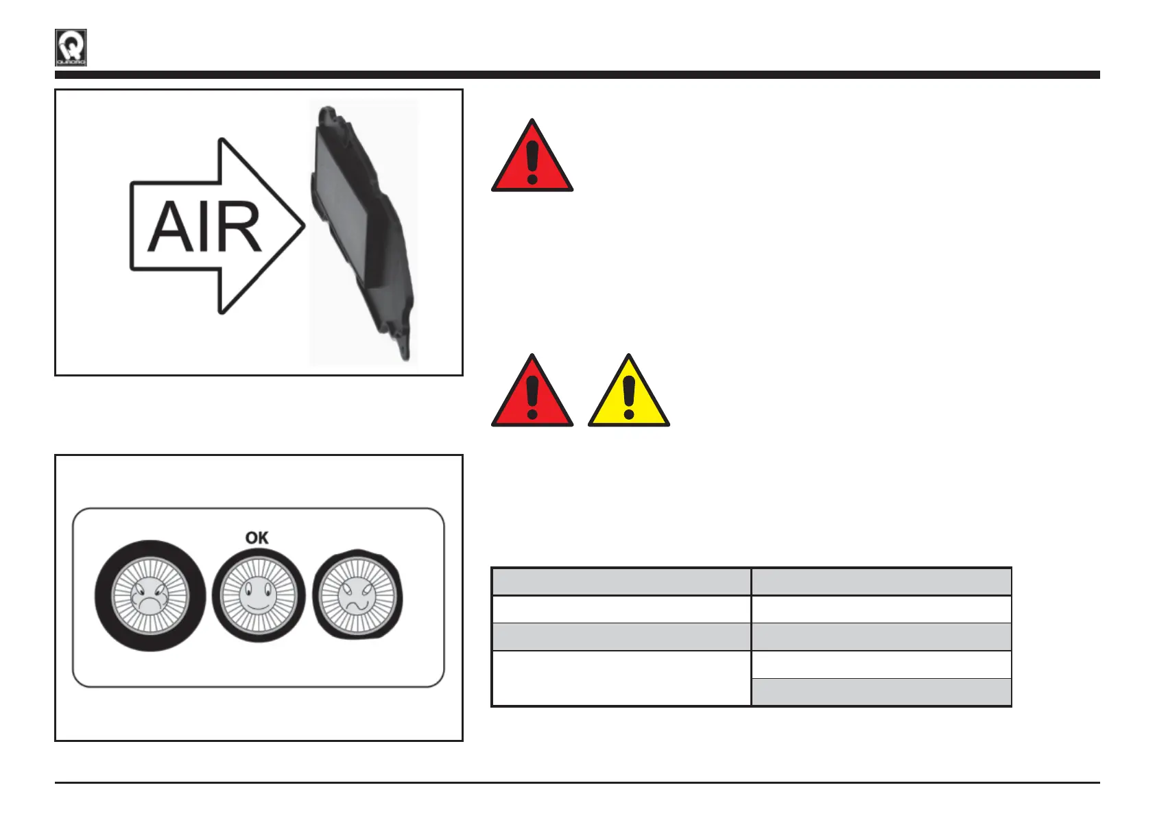The tyre inflation pressure must be checked periodically before riding.