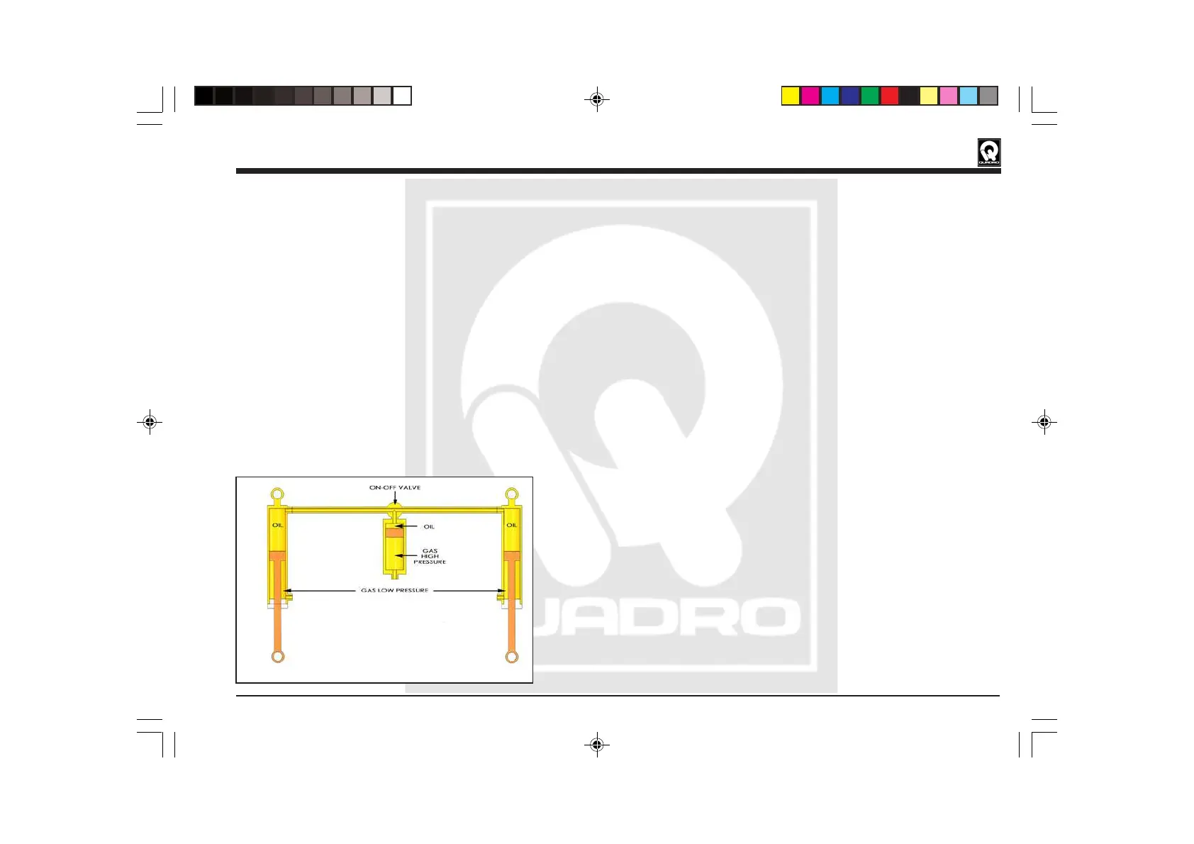 the two front wheel swinging-arms, while the centrally-mounted spring cylinder