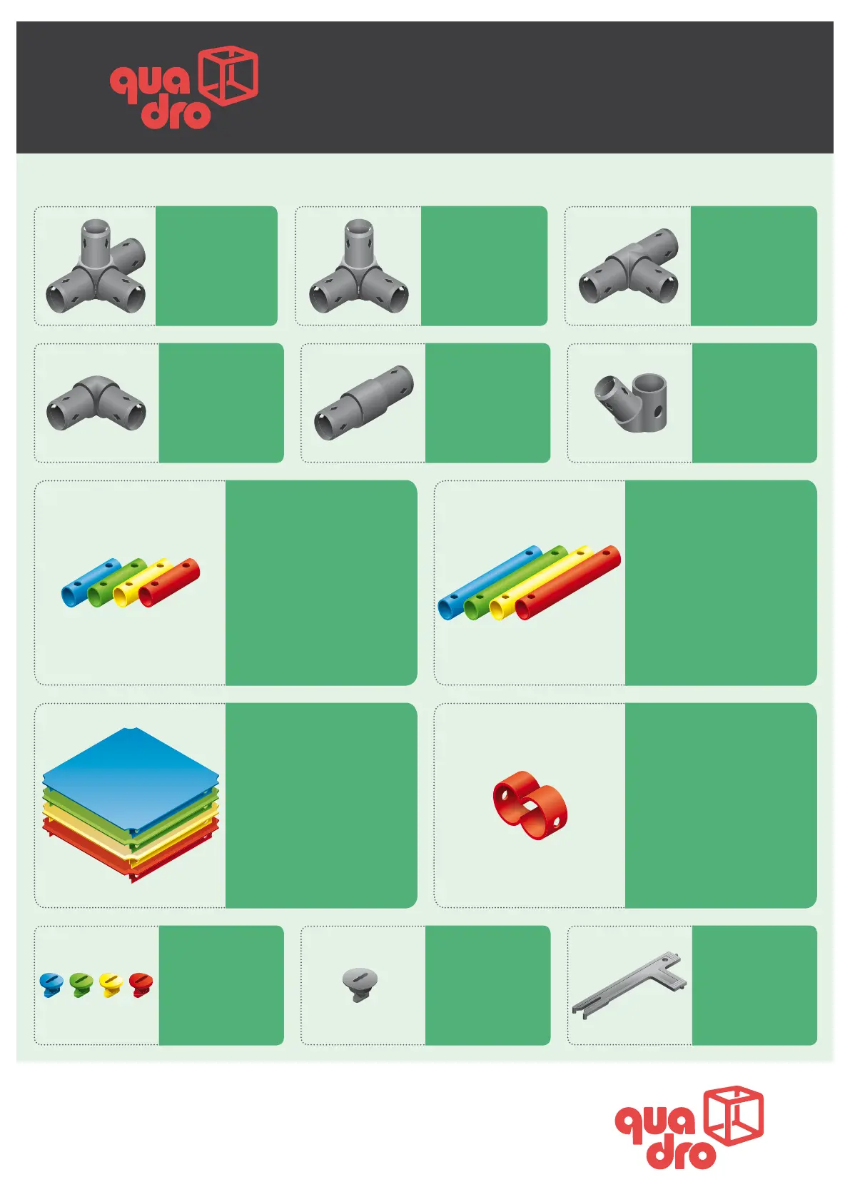 Quadro Adventure - Components ADVENTURE; Connectors; Tubes and Panels; Hardware and Tools