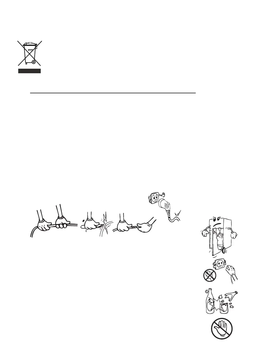 • Do not place explosive or ammable material in your fridge. Place drinks