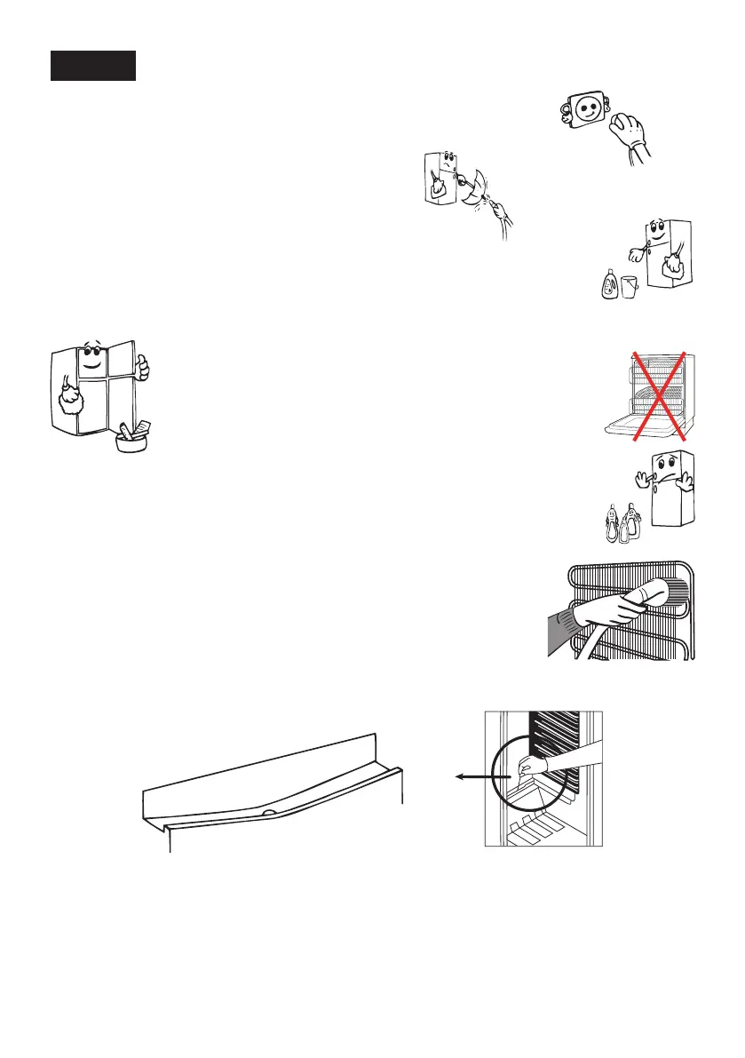 • Исклучете го фрижидерот од напојувањето пред чистење.