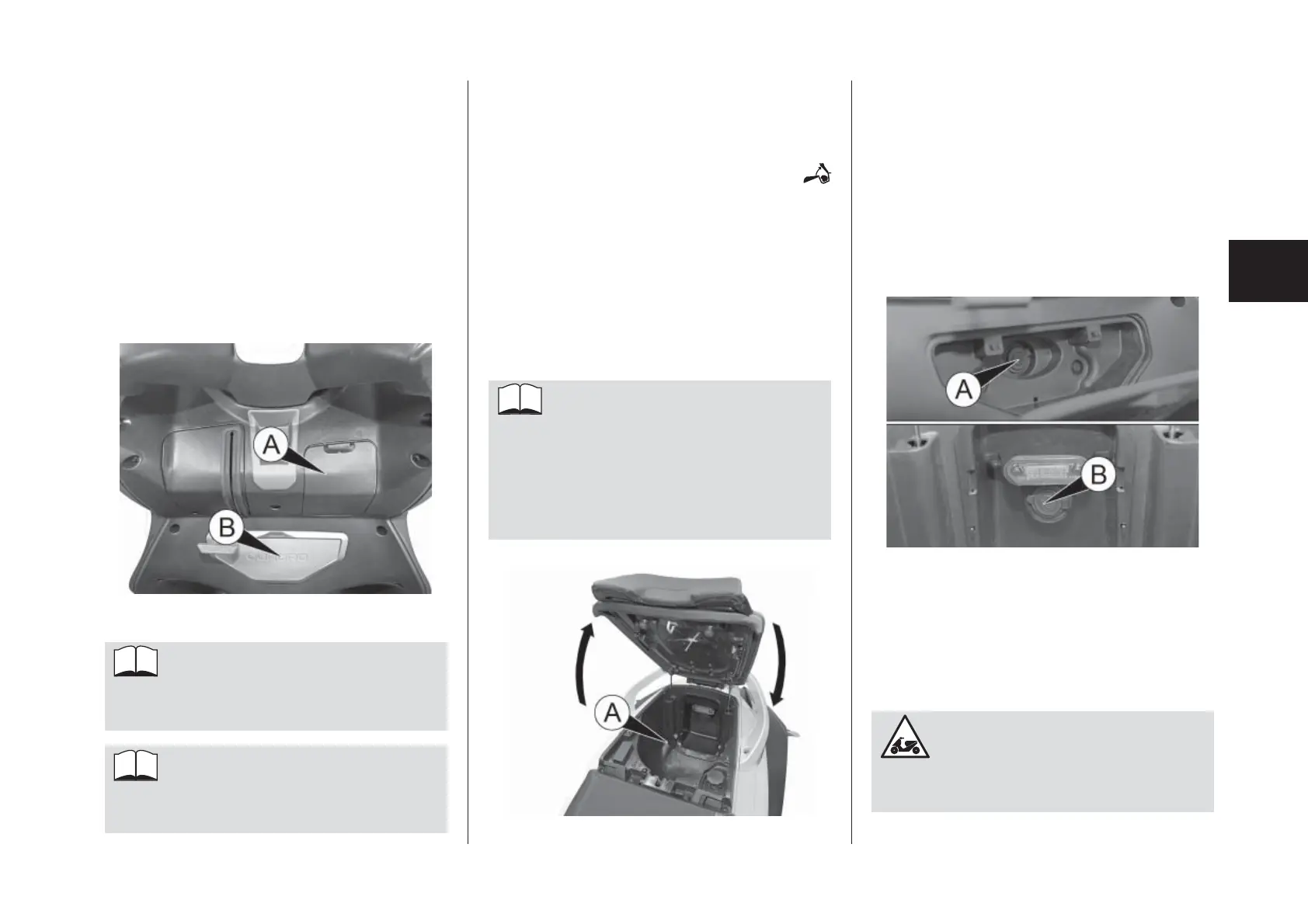 • Raise the seat A to access the com-