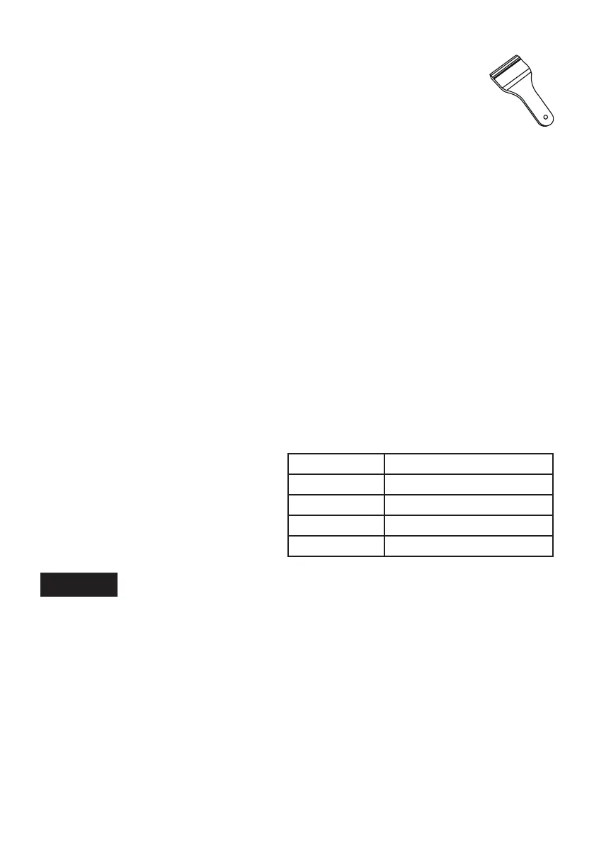 plastic scraper provided if necessary. Do not use sharp metal objects for this