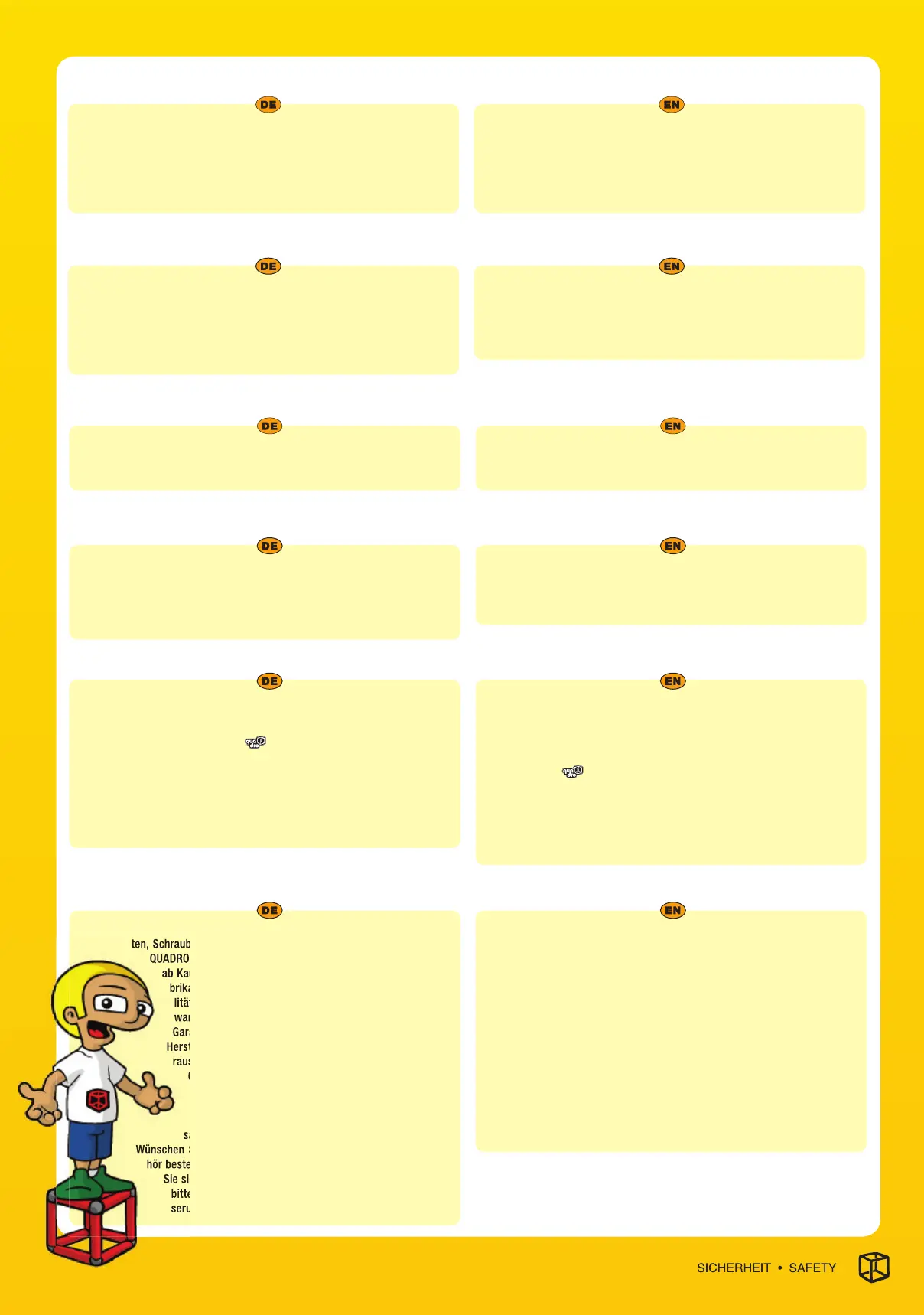 Achtung: Warten Sie Ihr QUADRO Modell regelmäßig auf defekte Teile und prü-
