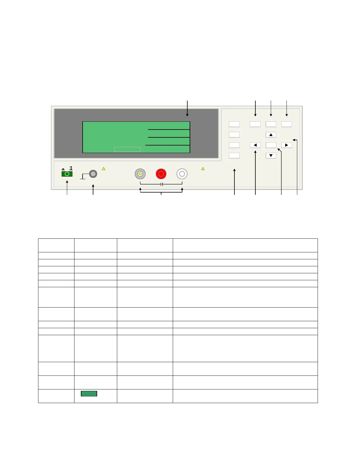 Leakage Current/IR Meter instrument. Table 1-1 identifies them with description and function.