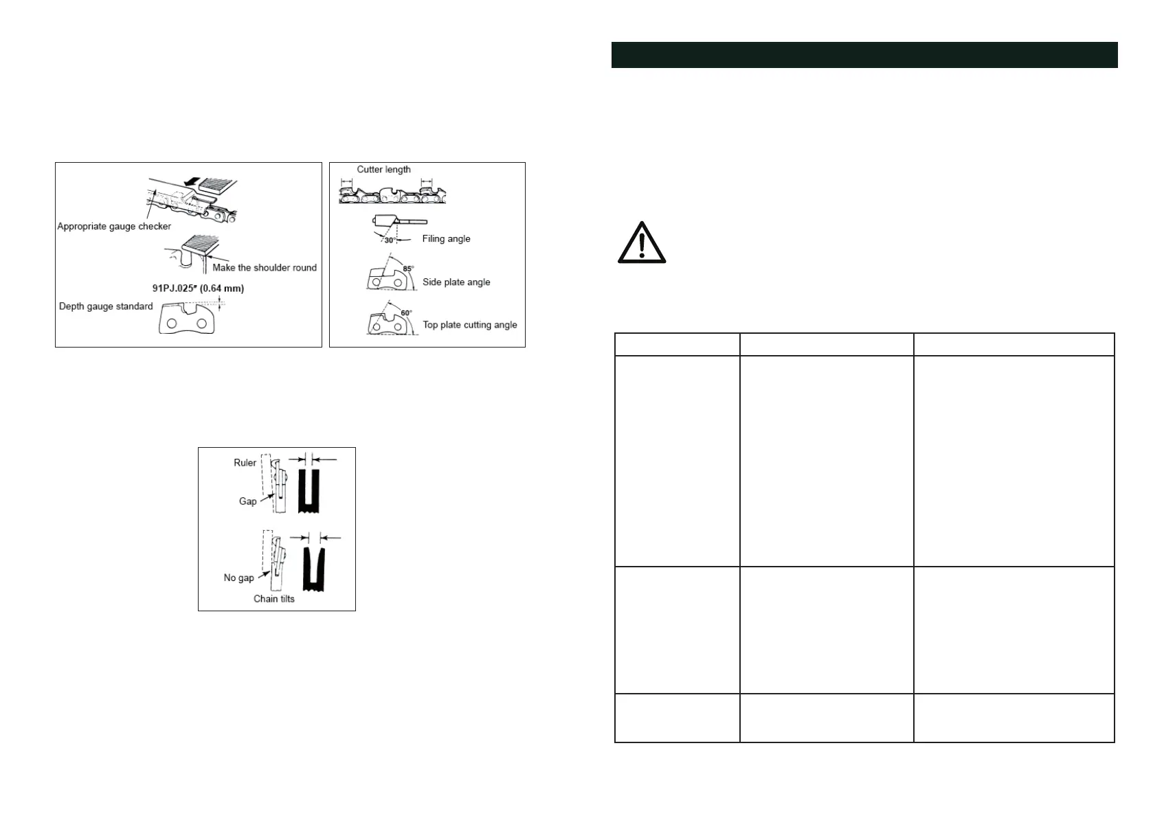 The following table provides solutions to common problems encountered with the chainsaw.