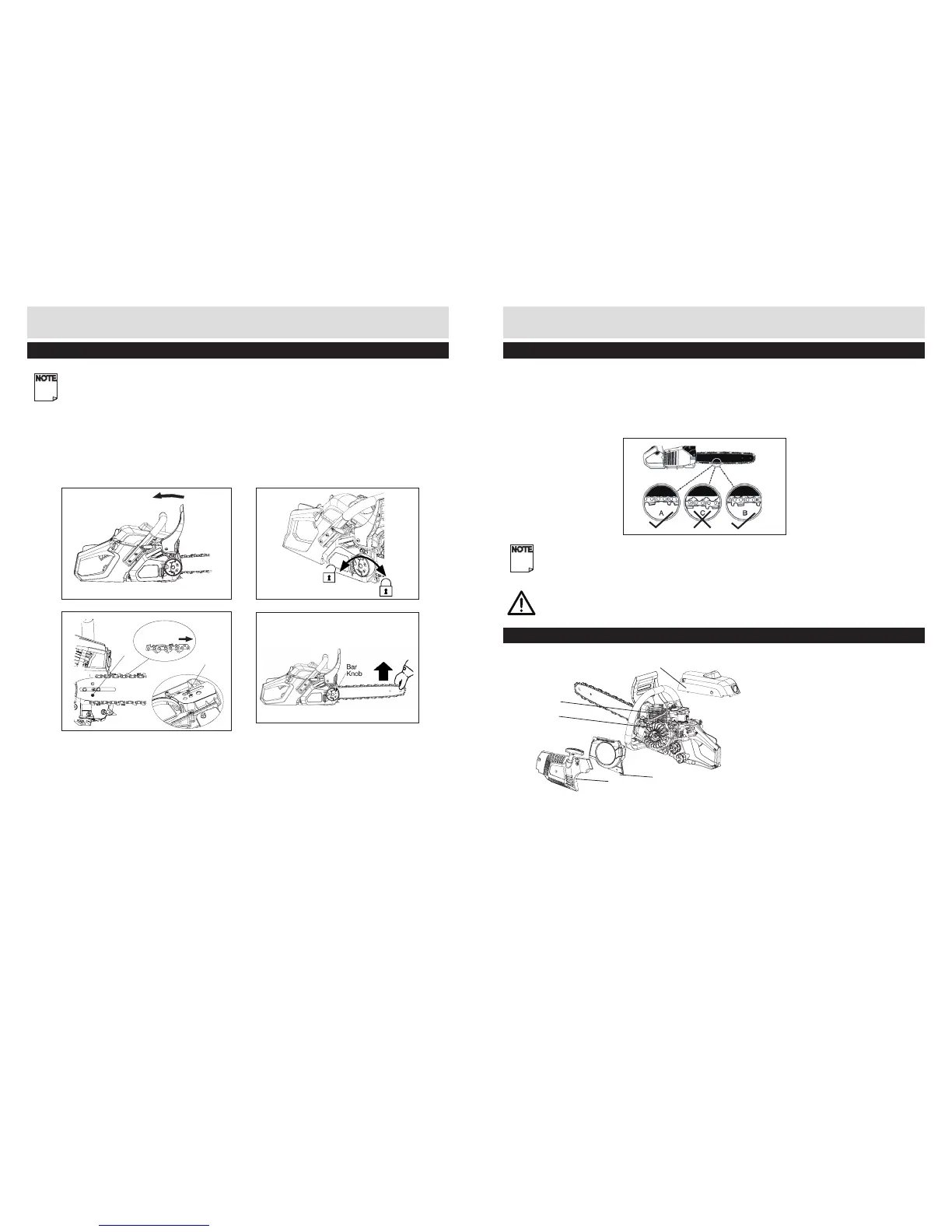 picture on the bar. Fit the chain on the sprocket. Adjust the position of chain tensioner so the