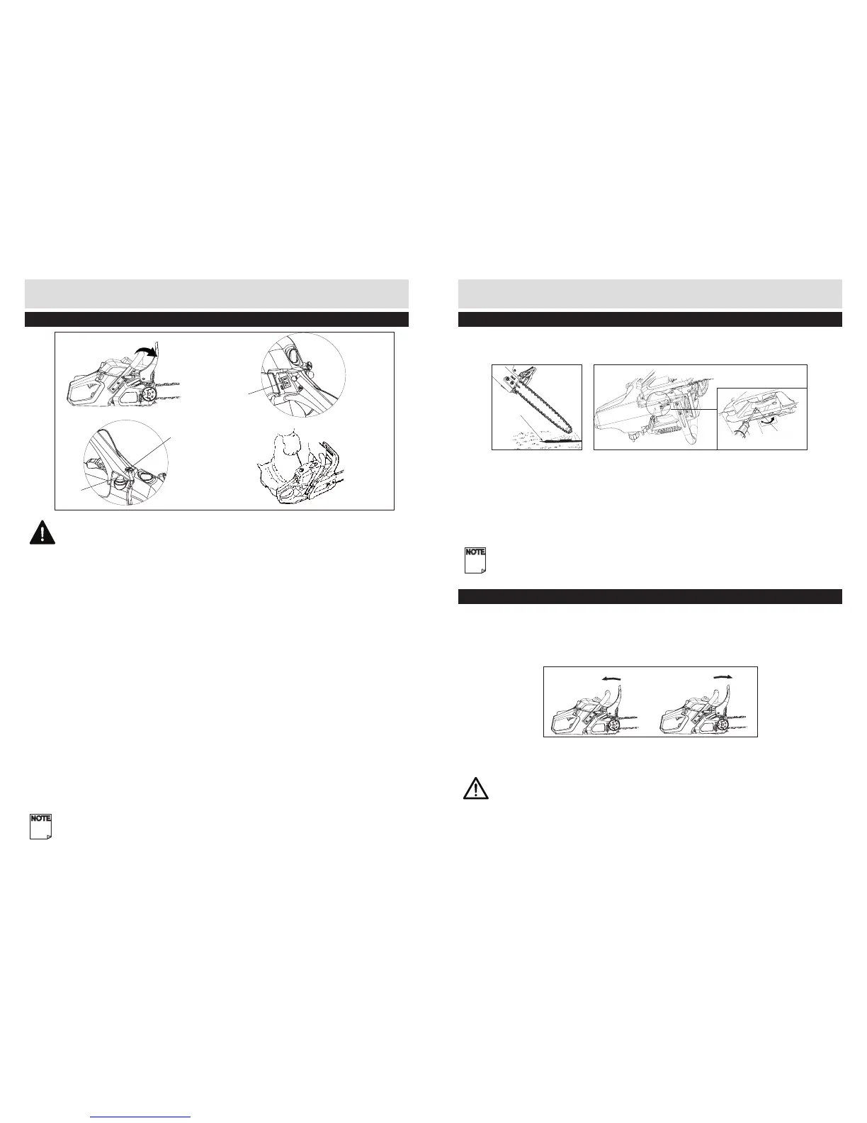 with the front guard pushed forward to the guide bar. To disengage the chain-brake, pull it back