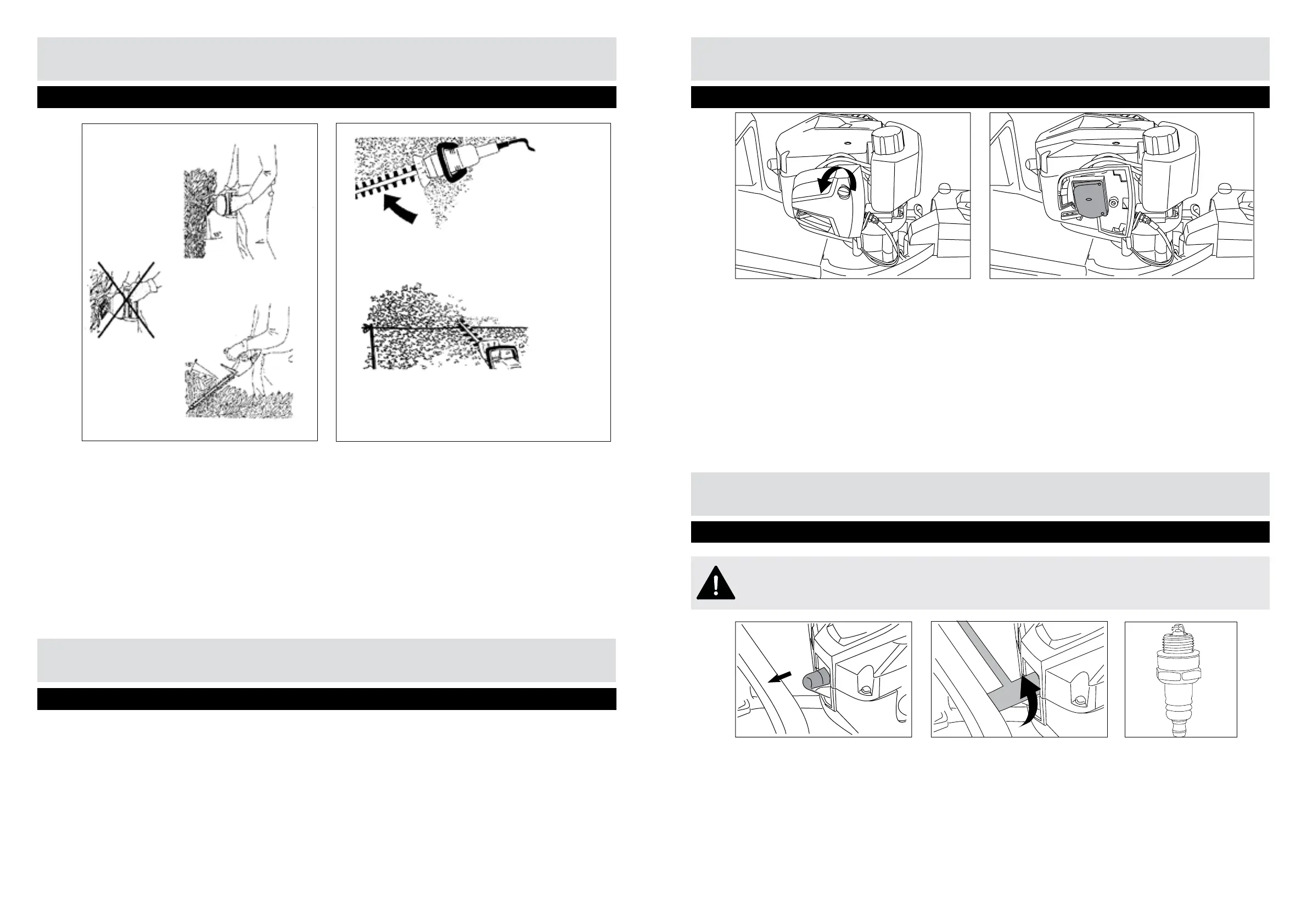 the hedge. When cutting the top part guide the trimmer in a sickle like movement toward the