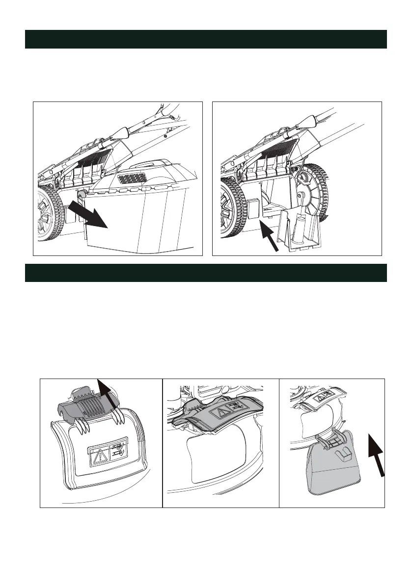 When mulching, remove the collection grass bag, and put the plastic mulching plug into the