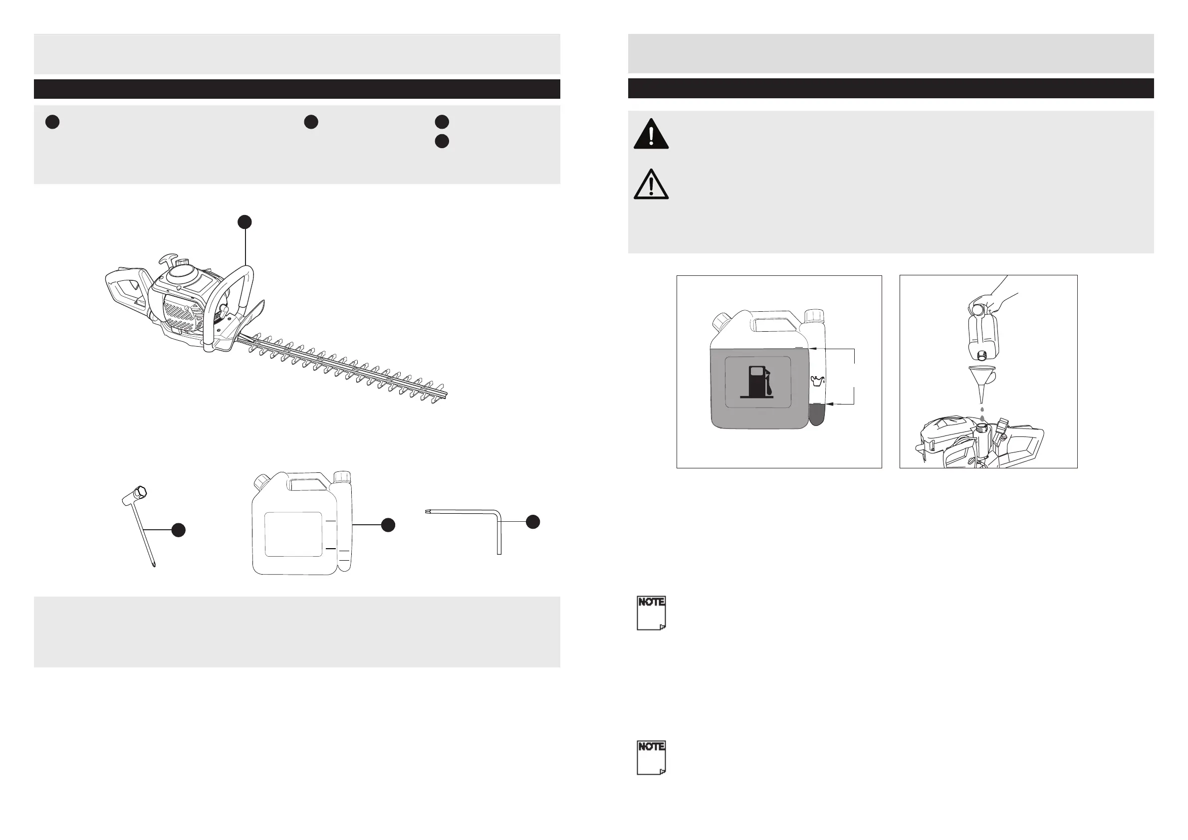 mix the two products prior to pouring into the tank of hedge trimmer.