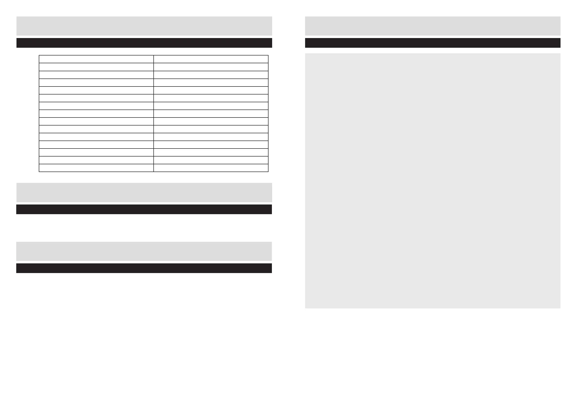 Technical Data Table