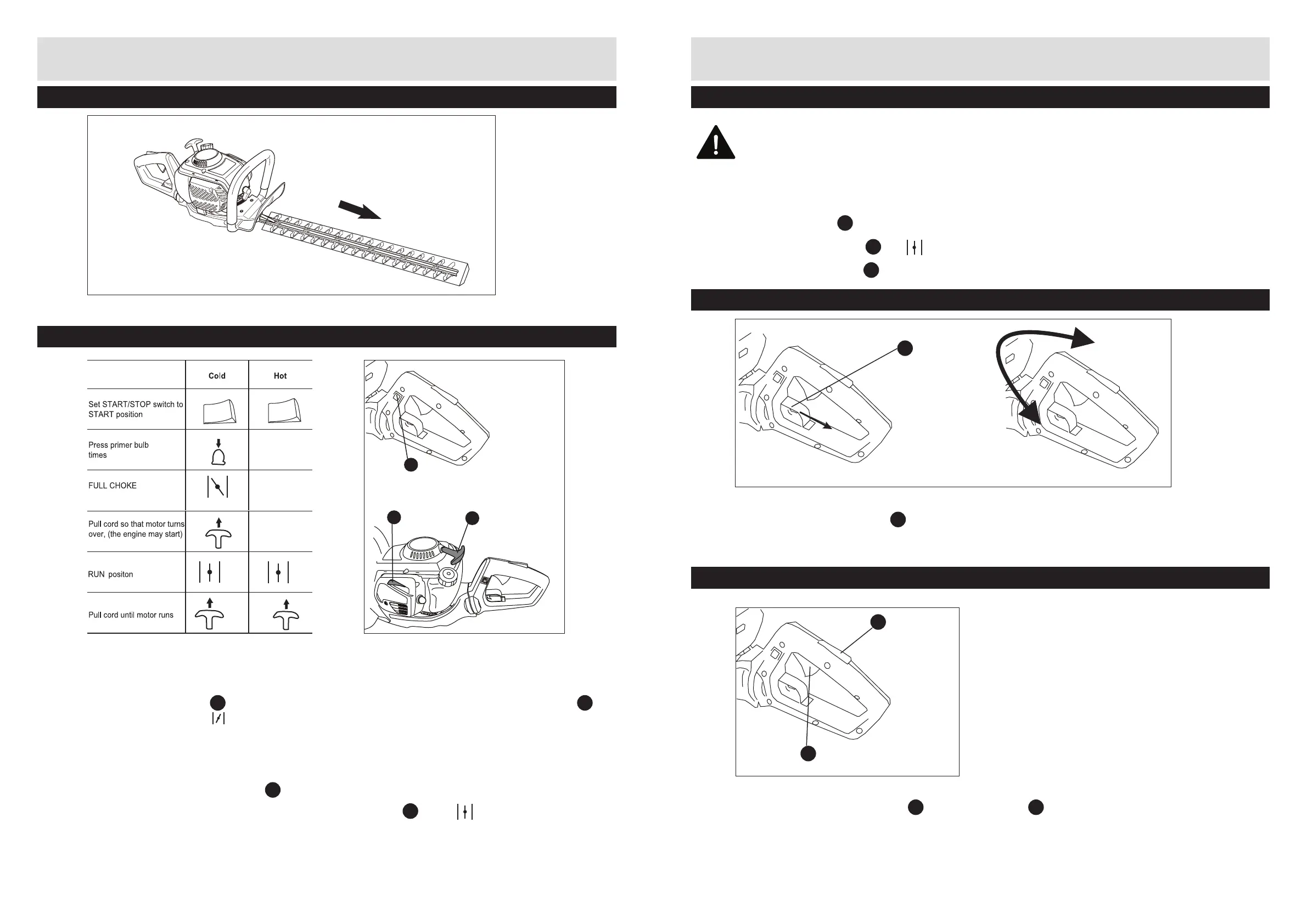 5) Let it run for about 30 seconds then operate the hedge trimmer.