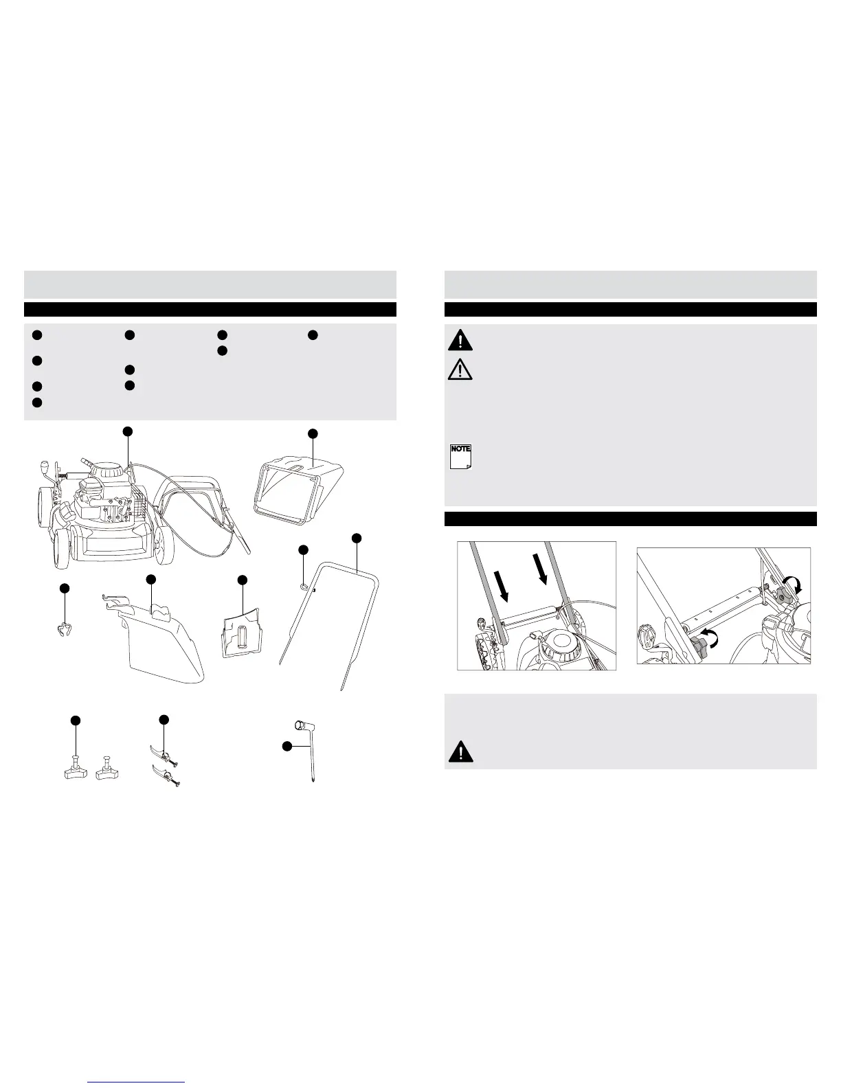 IMPORTANT! Before assembling the lawnmower, check all the parts indicated in the manual