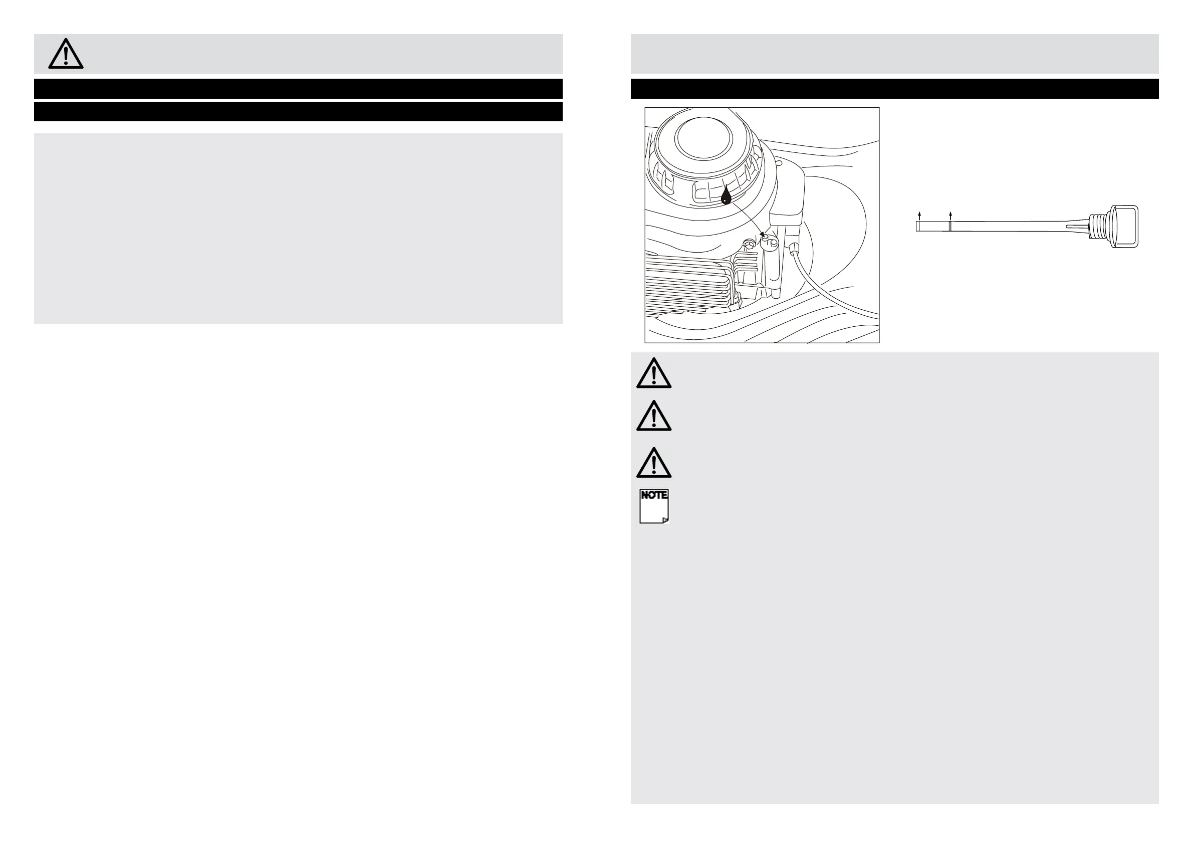 CAUTION! To prevent engine damage the engine is shipped without oil or petrol. The engine